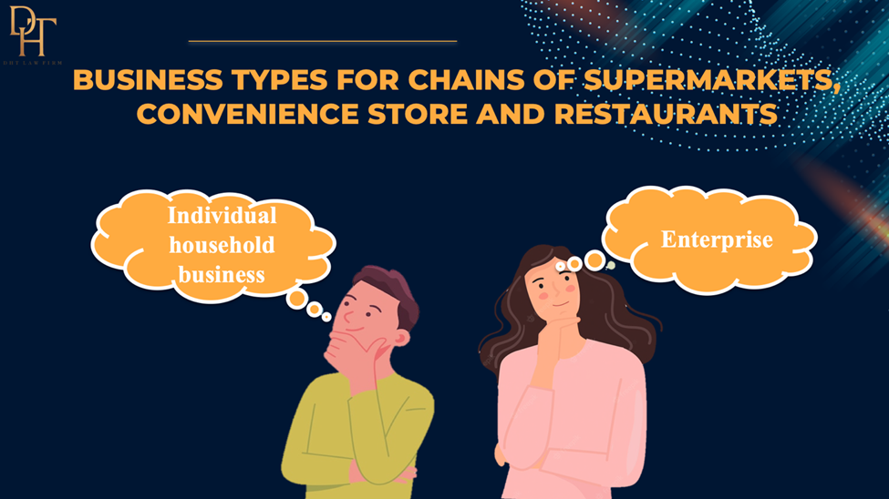 Based on the scale, demands, and financial capacity, investors can choose for themselves the appropriate type of business. As analyzed above, the business types of supermarket chains, convenience stores, and restaurants should be opened in the form of a business establishment to act as a management company. After that, businesses can open more business locations to build the chain. These options are the optimal solution because they bring convenience in the establishment, management, and expansion of business activities in the long run. Obviously, investors still have the option to set up business households or open branches if it suits their own needs. Through this article, investors can grasp the basic legal information they need to choose the best and most suitable business plan for themselves.